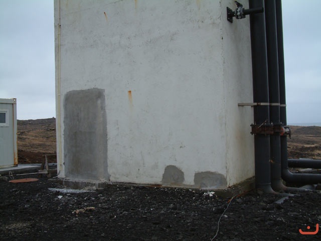 Þessi mynd var tekin um mánuði eftir meðhöndlun. Xypex efnið hefur náð að þétta og ekki er minnsti vottur um raka.