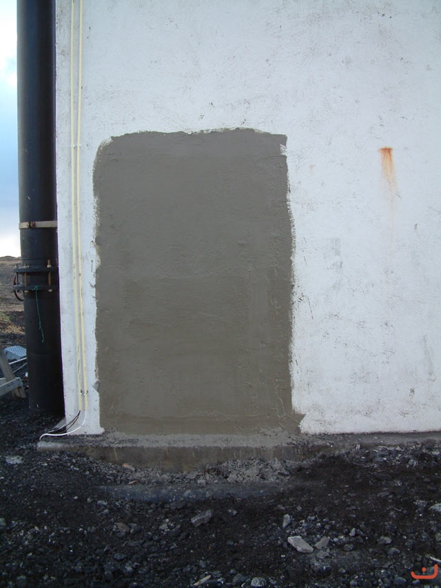 Loks er Xypex concentrade smurt yfir allt hurðaropið