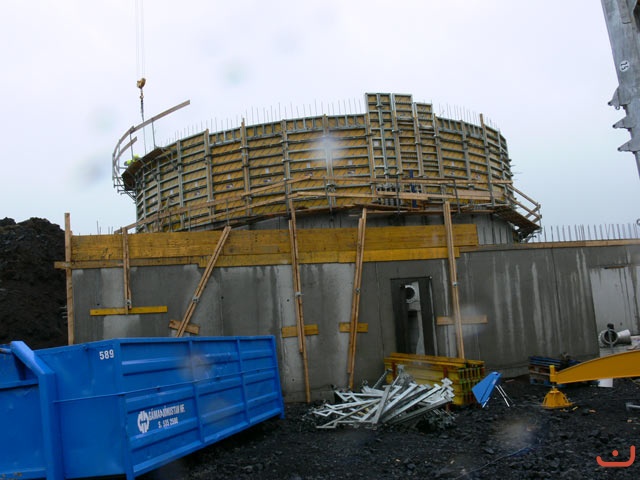 Verið að slá upp fyrir vatnstanki í Heiðmörk. Verktaki: Silfursteinn